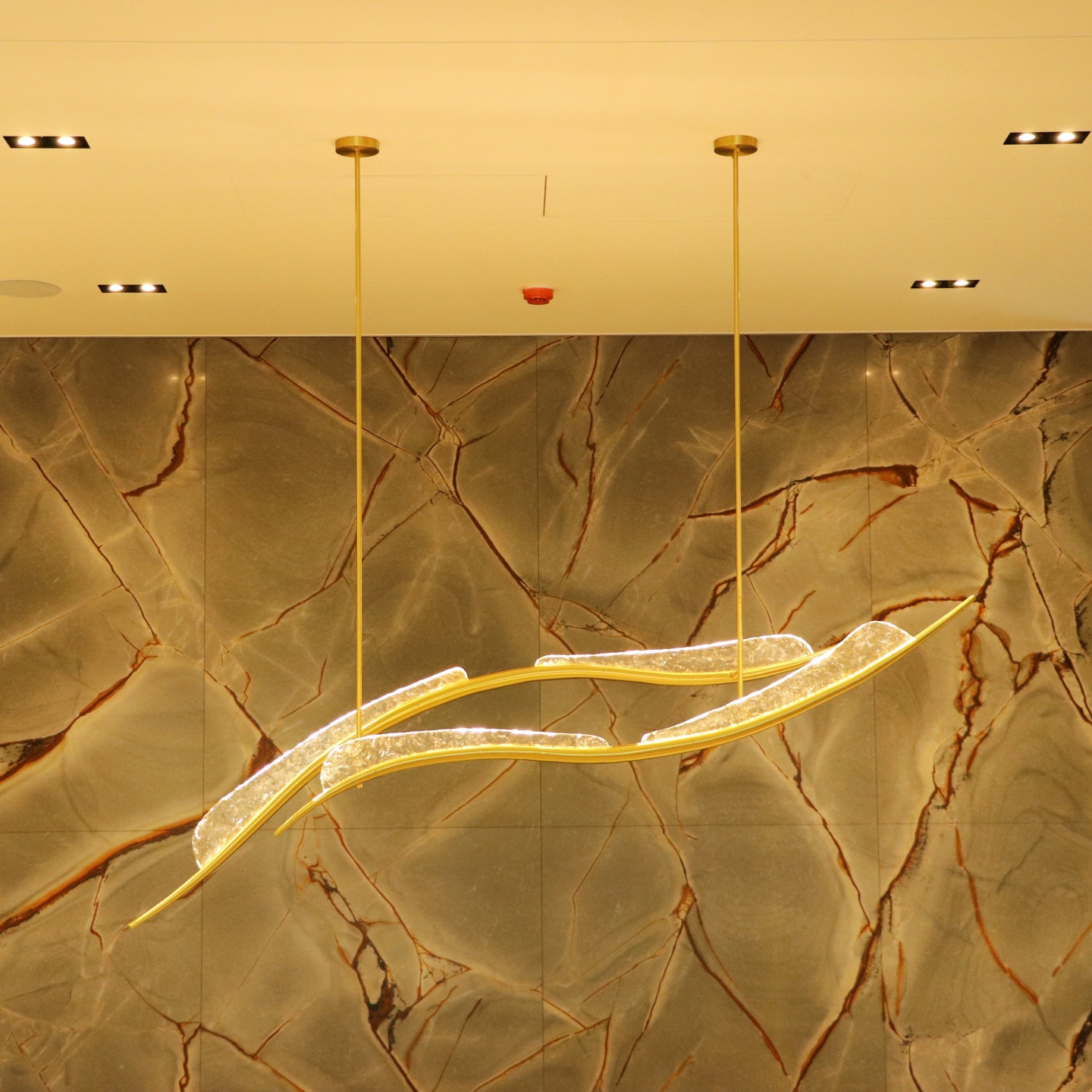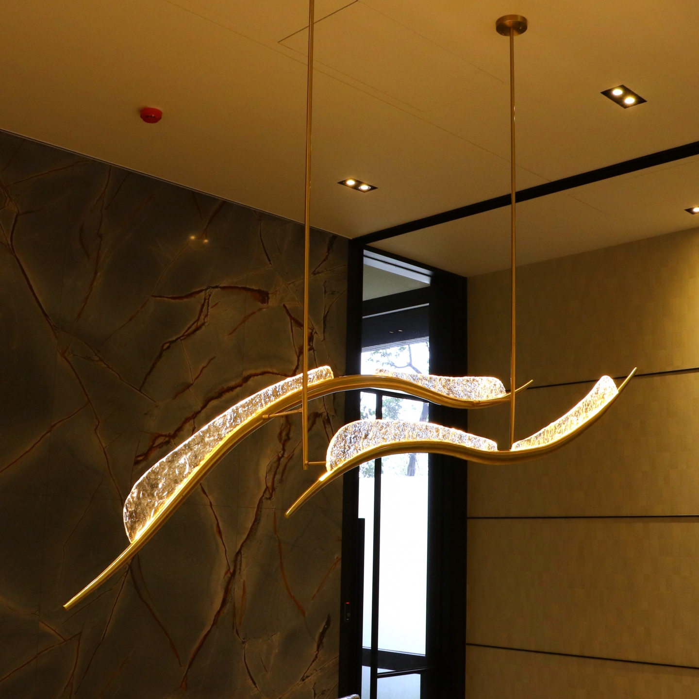 簡約不簡單,流線形燈具營造出時尚舒適的會客環境。