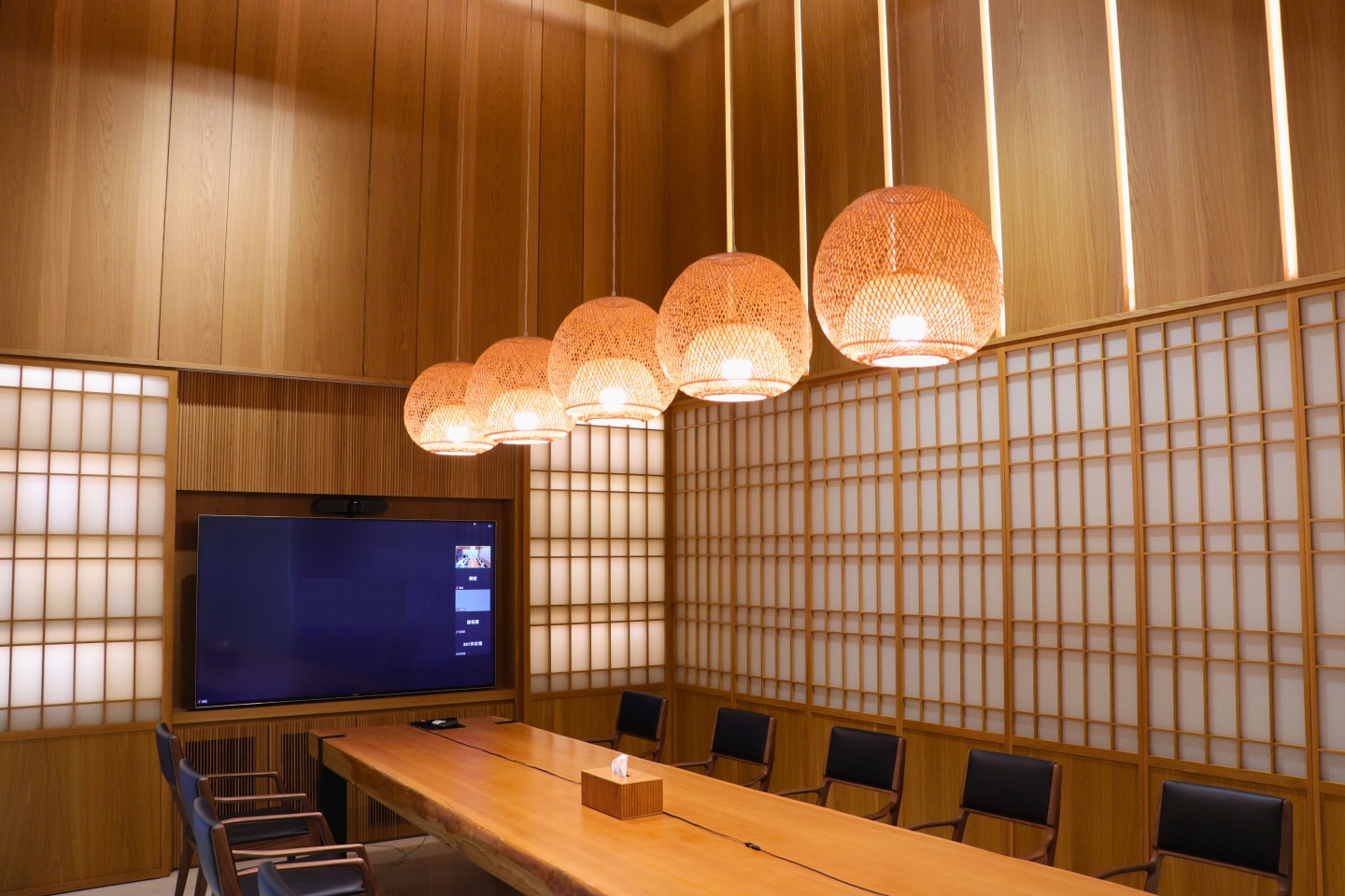 和風會議室的燈光設計,展現出簡約與雅致的特質,