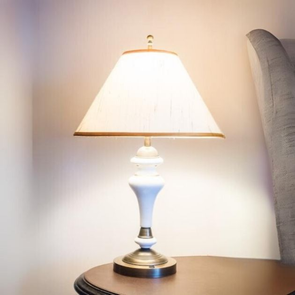 例如客廳茶几上的工藝造型檯燈,以及對於角落氣氛營造的落地燈。